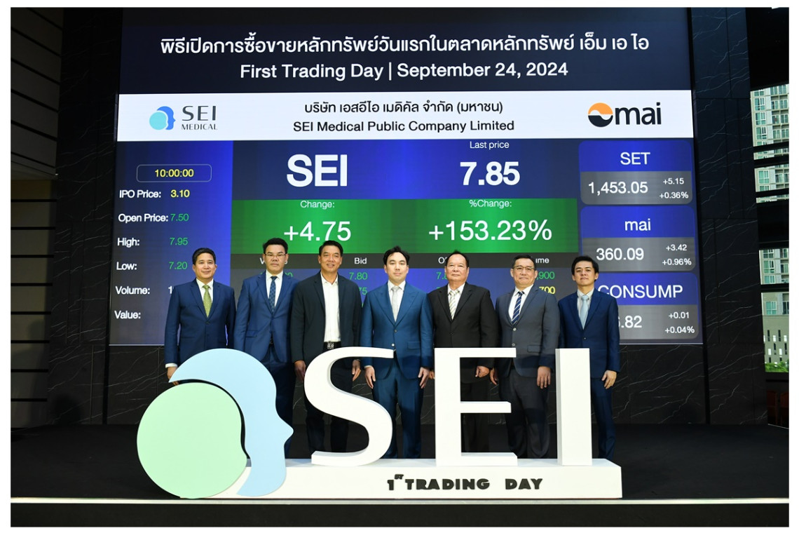 SEI เทรดวันแรกคึกคัก เปิดซื้อขายที่ระดับ 7.50 บาท เพิ่มขึ้น 4.40 บาท หรือ 142% จากราคา IPO 3.10 บาท ตอกย้ำความเชื่อมั่นของกลุ่มนักลงทุนที่มีต่อบริษัทฯ ประกาศเดินหน้า นำเงินจากการระดมทุน จำนวน 144.04 ล้านบาท (ภายหลังหักค่าใช้จ่ายในการเสนอขายหลักทรัพย์ ) เพิ่มศักยภาพและต่อยอดทางธุรกิจ สู่ผู้นำการให้บริการเครื่องมือและนวัตกรรมทางการแพทย์ครบวงจร พร้อมรุกให้บริการเช่าอุปกรณ์เครื่องมือทางการแพทย์ เพื่อสร้าง New S-Curve
