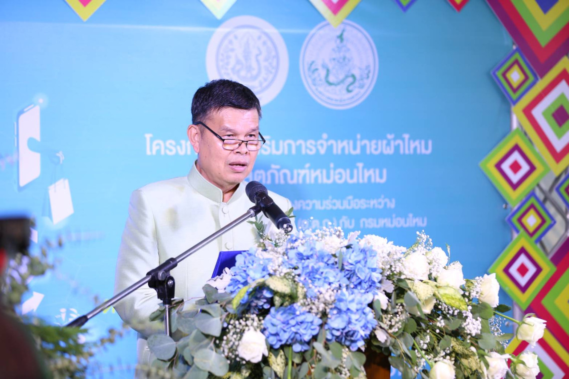 วันที่ 23 กันยายน 2567 เวลา 15.00 น. พันจ่าเอก ประเสริฐ มาลัย อธิบดีกรมหม่อนไหม เป็นประธานในพิธีเปิดงานโครงการส่งเสริมการจำหน่ายผ้าไหมและผลิตภัณฑ์หม่อนไหม ณ อาคารศูนย์แสดงสินค้าผลิตภัณฑ์เกษตรคุณภาพสูง ภายใต้บันทึกข้อตกลงความร่วมมือระหว่างองค์การตลาดเพื่อเกษตรกร (อ.ต.ก.) กับ กรมหม่อนไหม ร่วมกับ นายปณิธาน มีไชยโย ผู้อำนวยการองค์การตลาดเพื่อเกษตรกร (อ.ต.ก.) โดยมี ว่าที่ร้อยตรี ธีระนันท์ พิจารโชติ ผู้อำนวยการสำนักพัฒนาและถ่ายทอดเทคโนโลยีหม่อนไหม เป็นผู้กล่าวกล่าวรายงาน พร้อมด้วย นายวัชรพงษ์ แก้วหอม รองอธิบดีกรมหม่อนไหม นางสาวสุชาดา เวสารัชตระกูล รองผู้อำนวยการองค์การตลาดเพื่อเกษตรกร (อ.ต.ก.) นายอภิพัฒน์ เลิศฤทธิ์ศิริกุล รองผู้อำนวยการองค์การตลาดเพื่อเกษตรกร (อ.ต.ก.) ผู้บริหาร เจ้าหน้าที่ของกรมหม่อนไหมและ อ.ต.ก. และเกษตร ผู้ประกอบการ เข้าร่วมงาน ณ อาคารศูนย์แสดงสินค้าผลิตภัณฑ์เกษตรคุณภาพสูง องค์การตลาดเพื่อเกษตรกร (อ.ต.ก.) กรุงเทพมหานคร