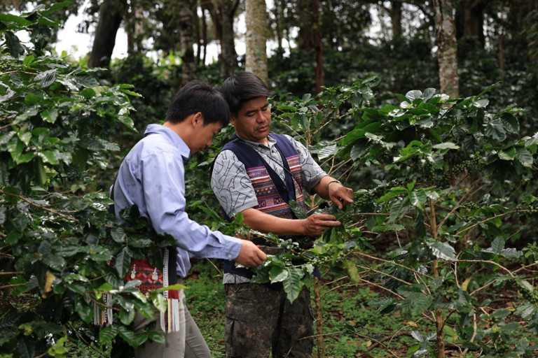 นายนิวัฒน์ คำมา นักวิชาการส่งเสริมและพัฒนา สถาบันวิจัยและพัฒนาพื้นที่สูง (สวพส.) กล่าวว่า ก่อนที่สวพส.จะเข้ามาพัฒนาพื้นที่แม่จันหลวง ดอยแม่สลอง จังหวัดเชียงราย ได้ทำการศึกษาหาข้อมูลและทำความคุ้นเคยกับชนเผ่าซึ่งมี 8 ชนเผ่า พบว่า เกษตรกรมีการปลูกกาแฟอยู่แล้ว แต่ไม่มีการจัดการที่ดีพอ ผลผลิตต่ำ การแปรรูปเมล็ดกาแฟไม่มีคุณภาพ สวพส. ได้นำหลักการพัฒนาพื้นที่สูงอย่างยั่งยืนตามแบบโครงการหลวงมาเป็นแนวทางในการดำเนินงาน ร่วมกับสร้างกระบวนการมีส่วนร่วมในการขับเคลื่อนงานพัฒนาและแก้ไขปัญหาการผลิตกาแฟให้เกษตรกรในพื้นที่ตลอดห่วงโซ่การผลิต ตั้งแต่การปลูก การจัดการสวน(ต้นน้ำ) การแปรรูป (กลางน้ำ) การจำหน่าย (ปลายน้ำ) ด้วยการรับฟังปัญหา ความต้องการของเกษตรกร ชุมชน เพื่อค้นหาสาเหตุ และร่วมกันหาแนวทางแก้ไขปัญหา โดยมีหน่วยงานต่าง ๆ ที่เกี่ยวข้องเข้าร่วมให้ข้อคิดเห็นเพื่อให้มีแนวทางการทำงานในทิศทางเดียวกัน โดยนำข้อมูลจากแผนที่การใช้ประโยชน์ที่ดินรายแปลงของชุมชนมาเป็นเครื่องมือประกอบการตัดสินใจในการวางแผนปรับปรุงระบบการผลิต เลือกนวัตกรรมจากงานวิจัยที่เหมาะสมเพื่อแปรรูปกาแฟที่เป็นมิตรกับสิ่งแวดล้อม และผลักดันเรื่องการพัฒนากาแฟคุณภาพควบคู่กับการดูแลทรัพยากรสิ่งแวดล้อมให้ได้รับการบรรจุเป็นประเด็นการพัฒนาในยุทธศาสตร์จังหวัดเชียงราย ด้านการส่งเสริมการผลิตและพัฒนานวัตกรรมเพื่อยกระดับสินค้าเกษตรเชิงสร้างสรรค์ภายใต้แนวทางการพัฒนาที่ยั่งยืน