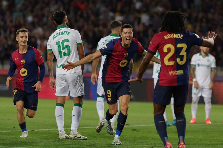 ที่สนาม เอสตาดิโอ โอลิมปิก เด มอนต์จูอิก ประเทศสเปน ใน การแข่งขันฟุตบอลลาลีก้า ฤดูกาล 2024-2025 คืนวันที่ 25 ก.ย.67 ระหว่างทีม "บาร์เซโลน่า" พบกับทีม "เกตาเฟ่" เริ่มเกมการแข่งขัน นาทีที่ 19 บาร์เซโลน่า ออกนำ 1-0 จากจังหวะที่ ยามาล แปะให้ คุนเด้ ที่โอเวอร์แลบแล้วจ่ายยัดเข้าใน โซเรีย รับบอลหลุดมือเข้าทาง เลวานดอฟสกี้ ยิงจ่อ ๆ เข้าไป