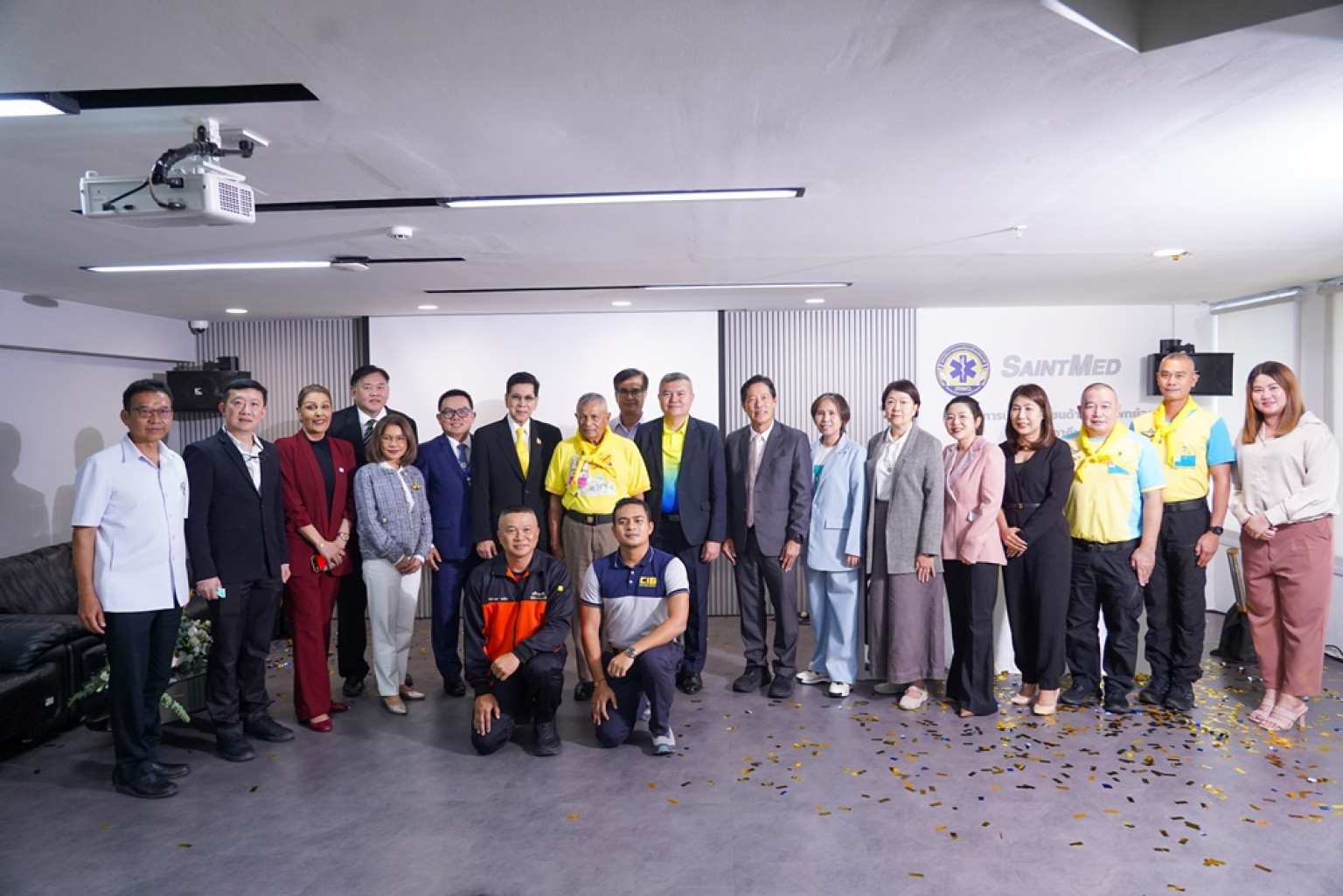 พลอากาศเอก สุบิน ชิวปรีชา กรมวังผู้ใหญ่ในพระองค์ 904 (กลางเสื้อสีเหลือง) , พล.อ.พงษ์เทพ เทศประทีป เลขาธิการมูลนิธิรัฐบุรุษพลเอกเปรม ติณสูลานนท์ และประธานกรรมการ บริษัท เซนต์เมด (SMD) (ที่ 2 จากซ้ายมือ) , เรืออากาศเอก นพ.อัจฉริยะ แพงมา เลขาธิการสถาบันการแพทย์ฉุกเฉินแห่งชาติ (ที่ 3 จากซ้ายมือ) ให้เกียรติมาเป็นประธานในพิธีเปิด ศูนย์การเรียนรู้ชุมชนด้านการแพทย์ฉุกเฉิน (ประเภทภาคีเครือข่าย) ของ บริษัท เซนต์เมด จำกัด (มหาชน) พร้อมด้วย ดร.วิโรจน์ วสุศุทธิกุลกานต์ ประธานเจ้าหน้าที่บริหาร SMD และผู้บริหาร ร่วมพิธีเปิดศูนย์ ฯ