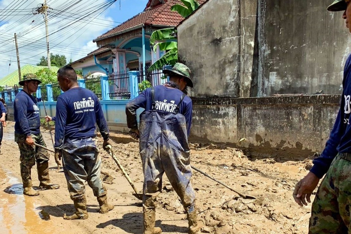 ชุดฟื้นฟู หน่วยบัญชาการต่อสู้อากาศยานและรักษาฝั่ง (สอ.รฝ.) กองทัพเรือ ร่วมกับหน่วยเรือรักษาความสงบเรียบร้อยตามลำแม่น้ำโขง เริ่มดำเนินการตามแผนฟื้นฟูบ้านพักอาศัย ที่ไม่สามารถช่วยเหลือตัวเองได้ ตามที่ได้รับแจ้งจากหัวหน้าชุมชน ที่ได้ลงสำรวจและรับแบ่งมอบงาน จากอำเภอและกรมการทหารช่าง โดยแบ่งออกเป็น 2 พื้นที่  ได้แก่ พื้นที่เหมืองแดงใต้ จำนวน 4 หลัง และพื้นที่ชุมชนปิยะพร จำนวน 6 หลัง