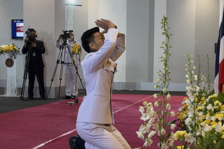 จากนั้นนายณัฐพงษ์ ได้ถวายบังคมต่อพระบรมฉายาลักษณ์ของพระบาทสมเด็จพระเจ้าอยู่หัว เป็นอันเสร็จพิธี