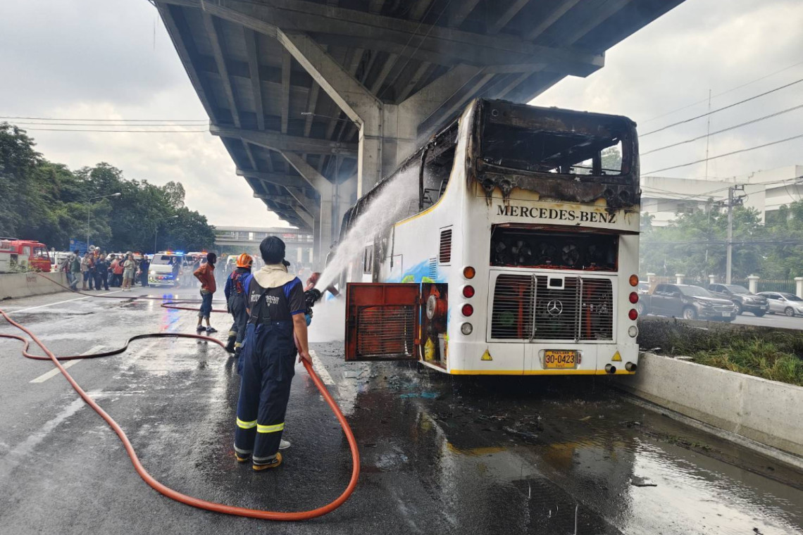 โดยข้อมูลล่าสุด รถคันเกิดเหตุมีครู 6 ราย ออกมาได้ 3 ราย และนักเรียน 38 ราย ออกมาได้ 16 ราย รวมในรถมีทั้งหมด 44 ราย ออกมาได้ 19 ราย มีผู้ป่วย 5 ราย เบื้องต้นนำส่งโรงพยาบาลแพทย์รังสิต ในจำนวนนี้ อาการหนักสีแดง 2 ราย เป็นเด็กหญิงอายุ 7 ปี และ 9 ปี ส่งต่อไปยังโรงพยาบาลธรรมศาสตร์รังสิต, เด็กหญิงอายุ 14 ปี อาการสีเหลือง ส่งต่อสถาบันสุขภาพเด็กแห่งชาติมหาราชินี ส่วนอีก 2 ราย เป็นหญิงอายุ 44 ปี และ 42 ปี ให้กลับบ้านได้ อย่างไรก็ตาม กรมการแพทย์ได้ให้โรงพยาบาลในสังกัดสำรองเตียงใน ICU และหน่วยดูแลบาดแผลไฟไหม้ไว้รองรับผู้ป่วยด้วยแล้ว โดยผู้ป่วยทุกราย พระบาทสมเด็จพระเจ้าอยู่หัวทรงพระกรุณาโปรดเกล้าฯ รับไว้เป็นผู้ป่วยในพระบรมราชานุเคราะห์