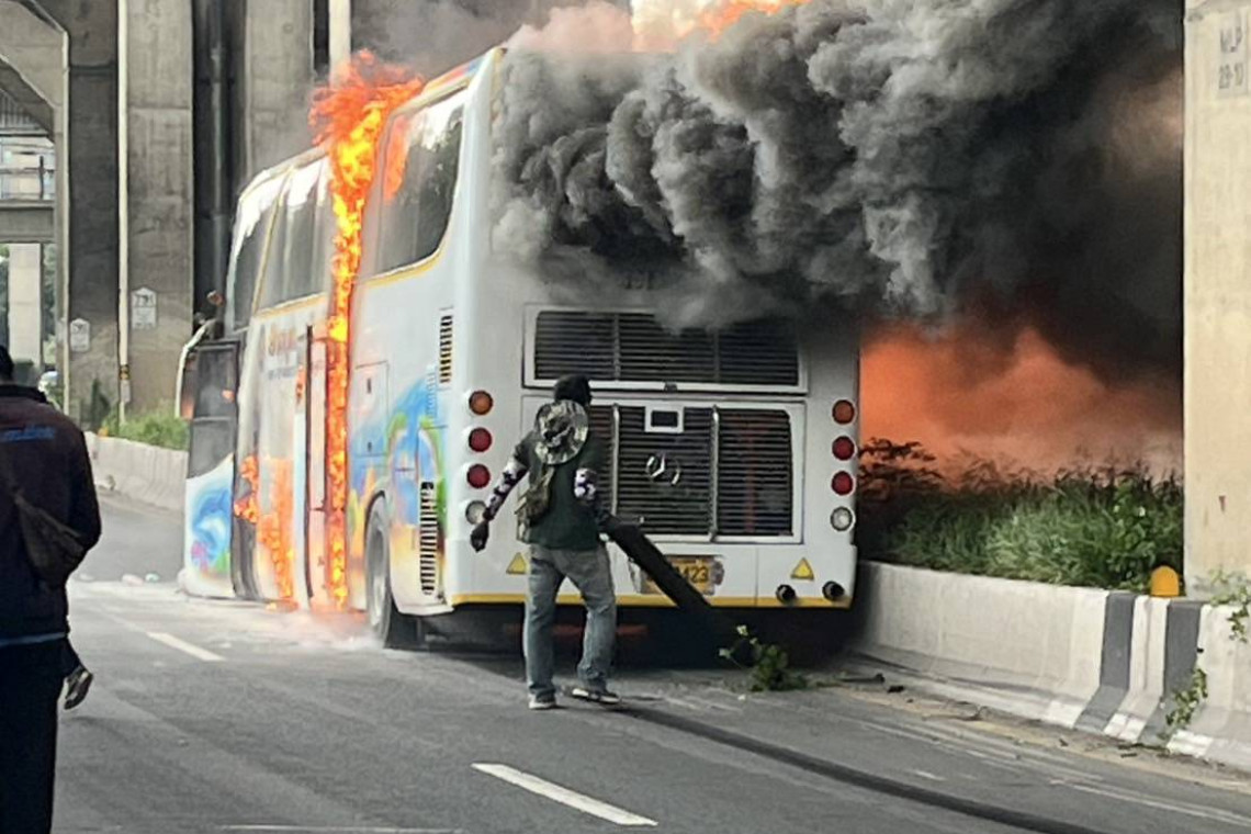 ที่เกิดเหตุอยู่บนถนนวิภาวดีฯ เจ้าหน้าที่พบเพลิงกำลังลุกไหม้รถบัสทั้งคัน ก่อนเร่งช่วยเหลือเด็กนักเรียนลงจากรถบัสและฉีดน้ำสกัดไม่ให้ไฟลุกไหม้ลุกลาม โดยใช้เวลาอยู่นานจึงสามารถควบคุมเพลิงไว้ได้