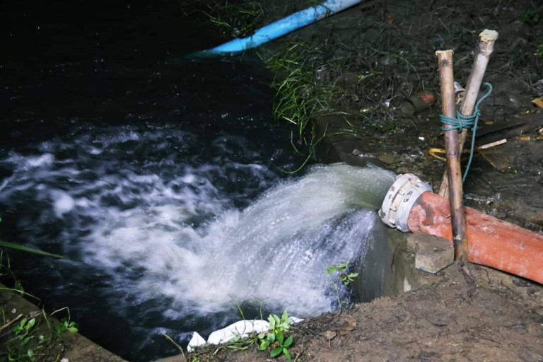 ทั้งนี้ ได้นำเครื่องสูบน้ำขนาดใหญ่ 24 นิ้ว จากกรมป้องกันและบรรเทาสาธารณภัย ที่มีอัตราการสูบน้ำได้ถึง 1.5 ลูกบาศก์เมตรต่อวินาที สามารถระบายน้ำได้กว่า 100,000 ลูกบาศก์เมตรต่อวัน มาทำการติดตั้งที่บริเวณหน้าวัดกอม่วง ตำบลอุโมงค์ อำเภอเมืองลำพูน จังหวัดลำพูน แล้วผันน้ำมาลงที่บริเวณลำเหมืองปิงห่าง หมู่ 7 ตำบลอุโมงค์ อำเภอเมืองลำพูน จังหวัดลำพูน ซึ่งในจุดนี้ก็จะมีการติดตั้งเครื่องสูบน้ำขนาด 6 นิ้ว อีก 3 เครื่อง เผื่อผันน้ำต่อผ่านไปยังพื้นที่ ต.เหมืองง่า และส่งต่อไปลงสู่แม่น้ำกวง และแม่น้ำปิง เพื่อที่จะระบายน้ำออกจากพื้นที่ให้เร็วที่สุด