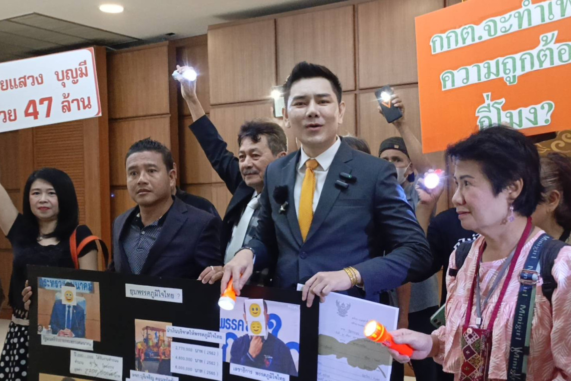 วันที่ 2 ต.ค.2567 ที่สำนักงานคณะกรรมการการเลือกตั้ง (กกต.) นายภัทรพงศ์ ศุภักษร หรือ ทนายอั๋น บุรีรัมย์ พร้อมมวลชนเดินทางมา กกต. เพื่อทำกิจกรรมเชิงสัญลักษณ์หลังนายแสวง บุญมี เลขาธิการกกต.ให้สัมภาษณ์ระบุว่าคำวินิจฉัยศาลรัฐธรรมนูญคดีนายศักดิ์สยาม ชิดชอบ ถือหุ้นห้างหุ้นส่วนจำกัดบุรีเจริญ คอนสตรัคชั่น ซึ่งมีการบริจาคเงินเข้าพรรคภูมิใจไทย ไม่เป็นเหตุแห่งการยุบพรรค