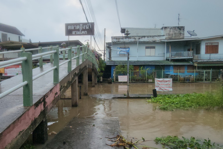 วันที่ 2 ตุลาคม 2567 ที่ตลาดอิงน้ำ ตำบลบางเตย อำเภอสามโคก จังหวัดปทุมธานี ชาวบ้านตลาดอิงน้ำเตรียมการรับมวลน้ำเหนือ เนื่องจากสถานการณ์น้ำลุ่มน้ำเจ้าพระยา ที่ท้ายเขื่อนเจ้าพระยาปริมาณน้ำ 1,899 ลูกบาศก์เมตรต่อวินาที น้ำในแม่น้ำเจ้าพระยาที่ปทุมธานี ระดับน้ำจะลงต่ำสุด เวลา 15.00 - 16.00 น. และจะขึ้นสูงสุดเวลา 21.00 น. อยู่ในเกณฑ์เฝ่าระวัง เนื่องจากปริมาณน้ำในแม่น้ำเจ้าพระยาเพิ่มสูงขึ้น