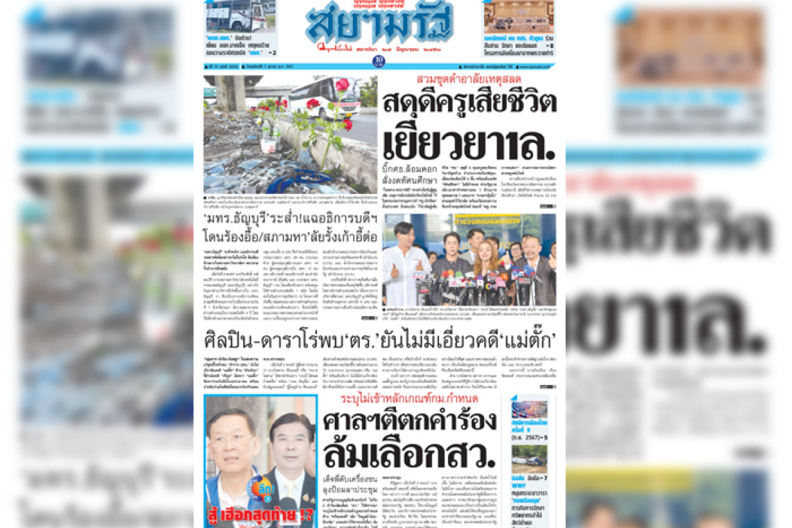 หน้า 1 หนังสือพิมพ์สยามรัฐรายวัน ฉบับวันพฤหัสบดีที่ 3 ตุลาคม 2567