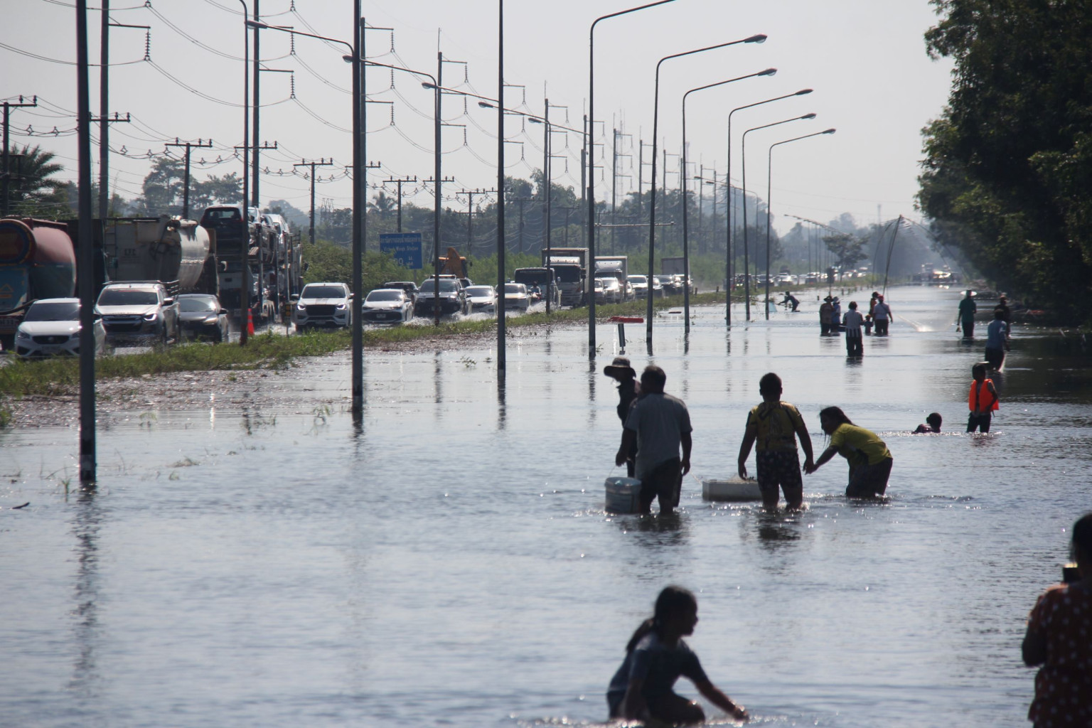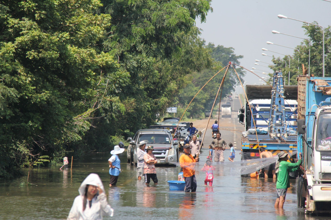 นอกจากนี้ยังพบว่า ฝั่งถนนสาย 24 (โชคชัย-เดชอุดม) ฝั่งขาเข้ากรุงเทพมหานคร ที่ได้ปิดช่องทางการจราจรยาวประมาณ 2 กิโลเมตร ได้พบว่ามีประชาชน และบรรดาผู้ปกครอง ต่างพาบุตรหลานมาเล่นน้ำบริเวณถนนดังกล่าวกันเป็นจำนวนมาก รวมถึงประชาชนบางส่วนก็ได้นำแห และวัสดุจับสัตว์น้ำ ออกมาหาปลาที่มากับมวลน้ำ เพื่อนำไปประกอบอาหารรับประทานในครัวเรือน กันอย่างคึกคักเช่นเดียวกัน ซึ่งทาง อบต.ทุ่งกระตาดพัฒนา และหน่วยงานที่เกี่ยวข้อง จะได้ทำเครื่องหมายและสัญลักษณ์เตือนให้ทราบเพื่อจะได้เฝ้าระวังกันต่อไป