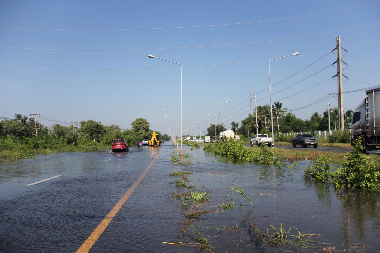 โดยระดับน้ำที่ท่วมถนนสูงเกือบ 1 เมตร เป็นระยะทางยาวประมาณ 2 กิโลเมตร ตั้งแต่บริเวณ ภูธารา กรีนปาร์ค ต.บุกระสัง อ.หนองกี่ จ.บุรีรัมย์ ไปจนเกือบถึงบ้านหนองมัน ต.บุกระสัง อ.หนองกี่ จ.บุรีรัมย์ ทำให้รถเล็กไม่สามารถสัญจรไปมาได้ เจ้าหน้าที่หมวดการทางหนองกี่ จึงได้ทำการปิดช่องทางการจราจรดังกล่าว และเปิดช่องทางพิเศษ คือ ช่องทางจราจรฝั่งขาเข้า อ.หนองกี่ เพื่อให้รถทั้งขาขึ้นและขาล่องขับสวนทางกัน ซึ่งในช่องทางดังกล่าวก็พบว่า น้ำยังได้ไหลบ่าจากถนนอีกฝั่ง เอ่อท่วมถนนเช่นเดียวกัน แต่ระดับน้ำยังพอที่รถเล็กสามารถสัญจรไปมา
