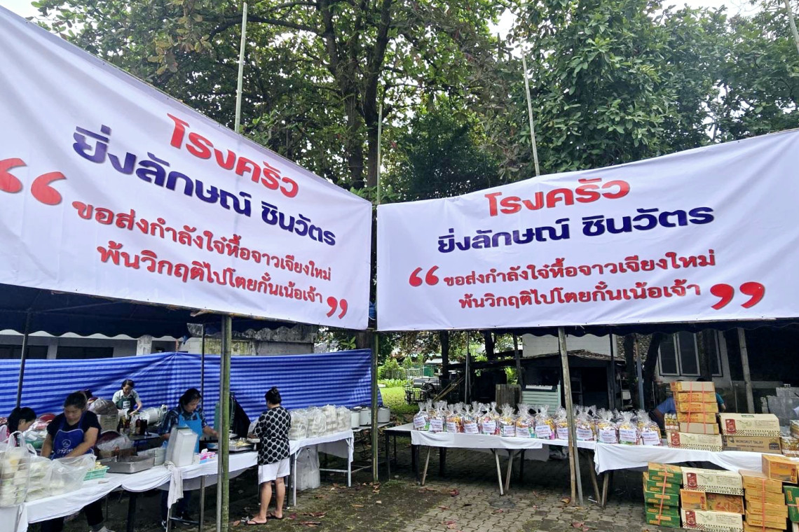 วันที่ 7 ต.ค.67 ผู้สื่อข่าวรายงานว่า นายทักษิณ ชินวัตร อดีตนายกรัฐมนตรี เปิดโรงครัว “ครัวปันรัก จากใจ ดร.ทักษิณ ชินวัตร” บริเวณตลาดแปดเก้าพลาซ่า ตำบลหนองหอย อำเภอเมืองเชียงใหม่ เพื่อทำข้าวกล่องแจกจ่ายให้กับประชาชนชาวเชียงใหม่ ที่ได้รับผลกระทบจากอุทกภัยน้ำท่วมในพื้นที่จังหวัดเชียงใหม่ ในพื้นที่จุดน้ำท่วมสูง และประชาชนไม่สามารถออกมาจับจ่ายใช้สอย หรือไม่สามารถเดินทางออกมาได้อย่างสะดวกในขณะนี้ พร้อมทั้งยังได้สนับสนุนวัตถุดิบการเปิดโรงครัวสนามให้กับสถานีตำรวจภูธรจังหวัดเชียงใหม่ เพื่อทำอาหารช่วยเหลือประชาชนชาวเชียงใหม่ ที่ได้รับผลกระทบจากอุทกภัยน้ำท่วมในพื้นที่จังหวัดเชียงใหม่ด้วย
