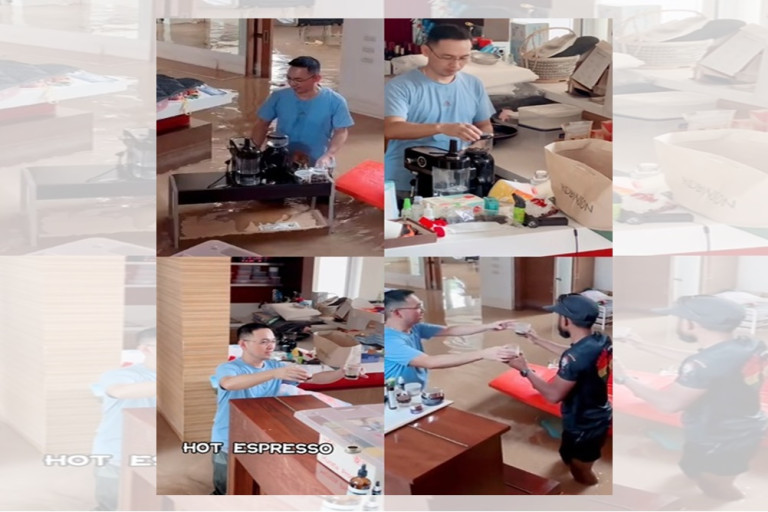 คนไทยถือว่าเป็นคนที่น้ำใจไม่แพ้ชาติใดในโลก ล่าสุดมีผู้ใช้ติ๊กต็อก @surechill6 โพสต์คลิป ชายผู้ประสบอุทกภัยสวมบทเป็นบาเร็ตต้า เข็นเครื่องชงกาแฟ มาเสิร์ฟเอสเปรสโซ่ร้อนให้พี่ๆที่มาส่งเสบียงให้ถึงบ้านที่ประสบภัยน้ำท่วม พร้อมระบุข้อความว่า...