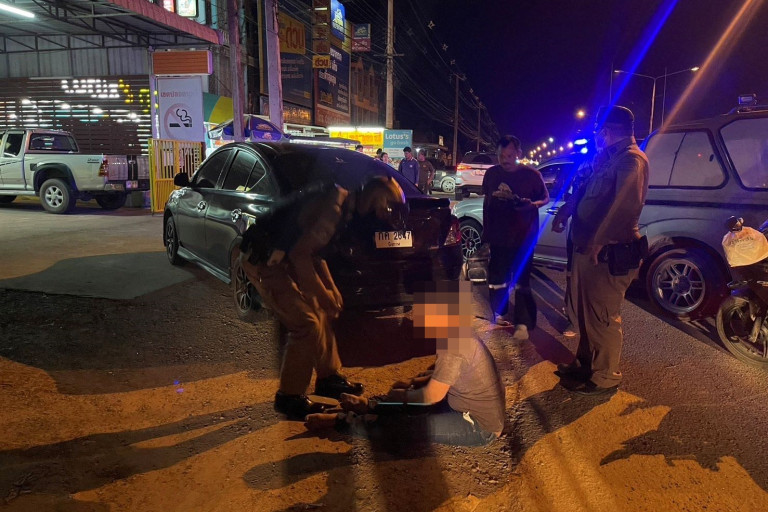 ด้าน ร.ต.อ.ถนัด วรรณนิวาส รอง สวป.สภ.เมืองชัยภูมิ หลังเข้าตรวจสอบในที่เกิดเหตุได้ตรวจสอบอาวุธปืนดังกล่าวพบว่าอาวุธปืนดังกล่าวเป็นปืนปลอมจึงเก็บไว้เป็นหลักฐานส่วนมีดสปาร์ต้าที่ตกในที่เกิดเหตุซึ่งเป็นของนายนายศราวุธ เจ้าหน้าที่จึงเก็บไว้เป็นหลักฐานพร้อมทั้งสวมกุญแจมือนายสราวุธก่อนส่งตัวไปตรวจร่างกายที่โรงพยาบาลชัยภูมิ ก่อนคุมตัวมาที่สถานีตำรวจภูธรเมืองชัยภูมิ เพื่อแจ้งข้อหา 1.พกพาอาวุธมีดไปในเมืองหมู่บ้านหรือทางสาธารณะโดยไม่มีเหตุอันควร 2.ทำร้ายร่างกายผู้อื่นจนได้รับบาดเจ็บ 3.)ประพฤติตนวุ่นวายก่อนส่งดำเนินคดีตามกฎหมายต่อไป