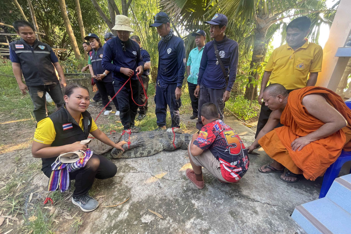 สำหรับจระเข้ หรือ “เจ้าตุ่ย” มีความยาวประมาณ 2.65 เมตร อายุประมาณ 8 ปี ซึ่งขอเรียนแจ้งว่าตอนนี้ทีมประมงได้จับจระเข้ได้แล้ว และไม่เป็นอันตรายหรือเสี่ยงภัย สำหรับญาติโยมที่จะเข้าไปทำบุญในวัด และชุมชน