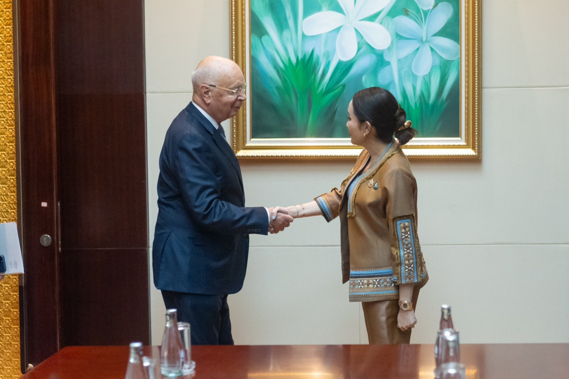 เมื่อเวลา 15.00 น.วันที่ 10 ต.ค. 67 ที่ศูนย์ประชุมแห่งชาติลาว นครหลวงเวียงจันทน์ สปป.ลาว น.ส.แพทองธาร ชินวัตร นายกรัฐมนตรี หารือทวิภาคีกับนาย Klaus Schwab ผู้ก่อตั้งและประธานสภาเศรษฐกิจโลก (World Economic Forum: WEF) โดยผู้ก่อตั้ง WEF เชิญนายกรัฐมนตรีไป Davos เพื่อใช้โอกาสนี้ในการประชาสัมพันธ์และแสดงถึงศักยภาพของไทยในด้านต่างๆ อาทิโครงสร้างพื้นฐาน