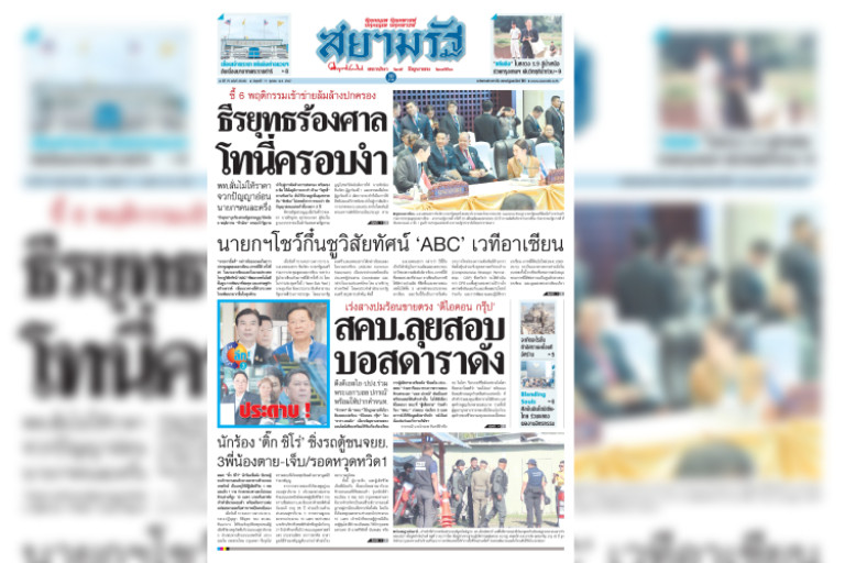 หน้า 1 หนังสือพิมพ์สยามรัฐรายวัน ฉบับวันศุกร์ที่ 11 ตุลาคม 2567