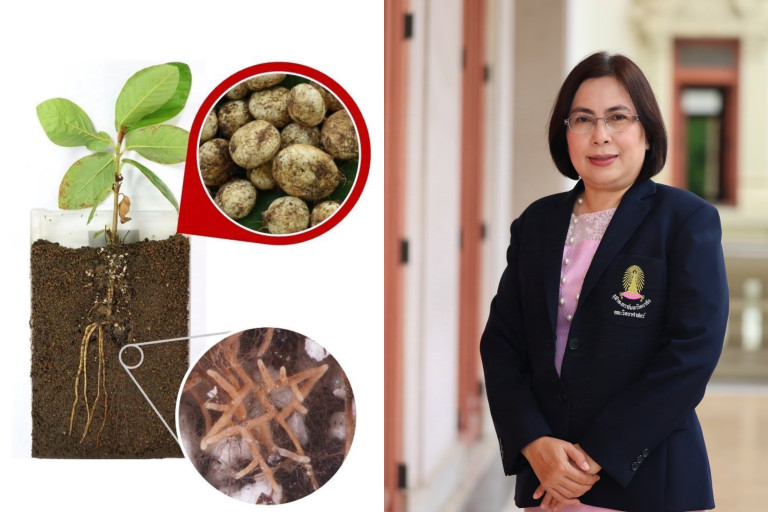 "เราจึงเริ่มต้นจากการเพาะเลี้ยงราเอคโตไมคอร์ไรซาในห้องปฏิบัติการ แล้วนำไปขยายใส่ให้กับ กล้าไม้วงศ์ยางที่เรือนเพาะชำ หลังจากปลูกต้นไม้วงศ์ยางได้ 4-5 ปี ก็มีเห็ดขึ้นบริเวณรากต้นไม้ จากนั้นได้ขยายผลมาทำโครงการวิจัยในพื้นที่ของจุฬาฯ ใน จ.สระบุรี ซึ่งพื้นที่ป่าเสื่อมโทรมถูกบุกรุกทำลายเช่นกัน”