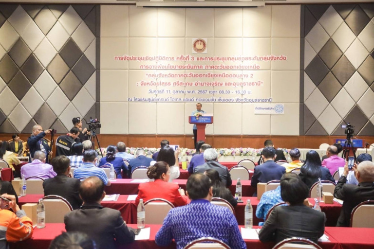 วันที่ 11 ต.ค.2567 เวลา 09.00 น. ณ โรงแรมสุนีย์แกรนด์ โฮเทลแอนด์ คอนเวนชั่น เซ็นเตอร์ อำเภอเมืองอุบลราชธานี จังหวัดอุบลราชธานี นายชัชวาลย์ เบญจสิริวงศ์ รองผู้ว่าราชการจังหวัดอุบลราชธานี เป็นประธานเปิดการประชุมเชิงปฏิบัติการ ครั้งที่ 3 และการประชุมกลุ่มย่อยระดับกลุ่มจังหวัดภาค การวางผังนโยบายระดับภาค ภาคตะวันออกเฉียงเหนือ "กลุ่มจังหวัดภาคตะวันออกเฉียงเหนือตอนล่าง 2 : จังหวัดอุบลราชธานี ยโสธร ศรีสะเกษ อำนาจเจริญ" กรมโยธาธิการและผังเมือง ได้ดำเนินการวางผังนโยบายระดับภาค ภาคตะวันออกเฉียงเหนือ ตามพระราชบัญญัติการผังเมือง พ.ศ. 2562 เพื่อใช้เป็นแนวทางในการพัฒนาและการดำรงรักษาพื้นที่ด้านการใช้ประโยชน์ที่ดิน การพัฒนาเมืองและชนบท การคมนาคมขนส่ง โครงสร้างพื้นฐาน การอนุรักษ์ทรัพยากรธรรมชาติและสิ่งแวดล้อม มุ่งสร้างความสมดุลระหว่างการพัฒนาและการอนุรักษ์ สนับสนุนการเพิ่มขีดความสามารถในการแข่งขัน สอดคล้องกับการเปลี่ยนแปลงประชากร กิจกรรมทางด้านเศรษฐกิจ และวิถีชีวิตของประชาชน ซึ่งจะช่วยขับเคลื่อนการพัฒนาภาคตะวันออกเฉียงเหนือในเชิงพื้นที่ ให้สอดรับสถานการณ์และบริบทการเปลี่ยนแปลงของประเทศไทย สอดคล้องกับยุทธศาสตร์ชาติ 20 ปี แผนพัฒนาเศรษฐกิจและสังคมแห่งชาติ แผนพัฒนากลุ่มจังหวัดฯ แผนพัฒนาจังหวัด และการพัฒนาเขตเศรษฐกิจพิเศษ ที่ผ่านมา การวางผังนโยบายระดับภาค ภาคตะวันออกเฉียงเหนือ ได้ดำเนินการจัดประชุมเชิงปฏิบัติการ ครั้งที่ 1 และครั้งที่ 2 และการประชุมกลุ่มย่อยระดับกลุ่มจังหวัดมาแล้ว ในรูปแบบ Online เพื่อระดมความคิดเห็นเกี่ยวกับศักยภาพ ปัญหา โอกาส และทิศทางการพัฒนาภาค ในการกำหนดร่างวิสัยทัศน์ และกรอบนโยบายการใช้พื้นที่ภาค