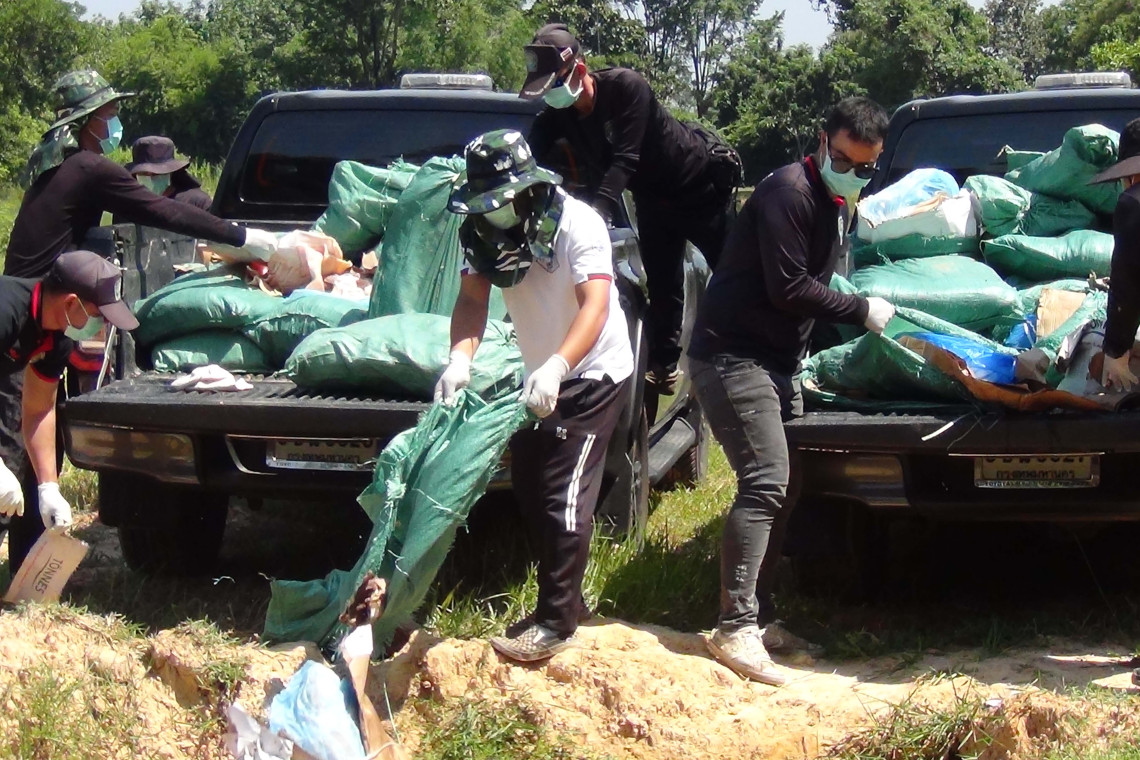 มุกดาหาร กักกันสัตว์ฝังกลบทำลายซากสุกรแซ่แข็ง