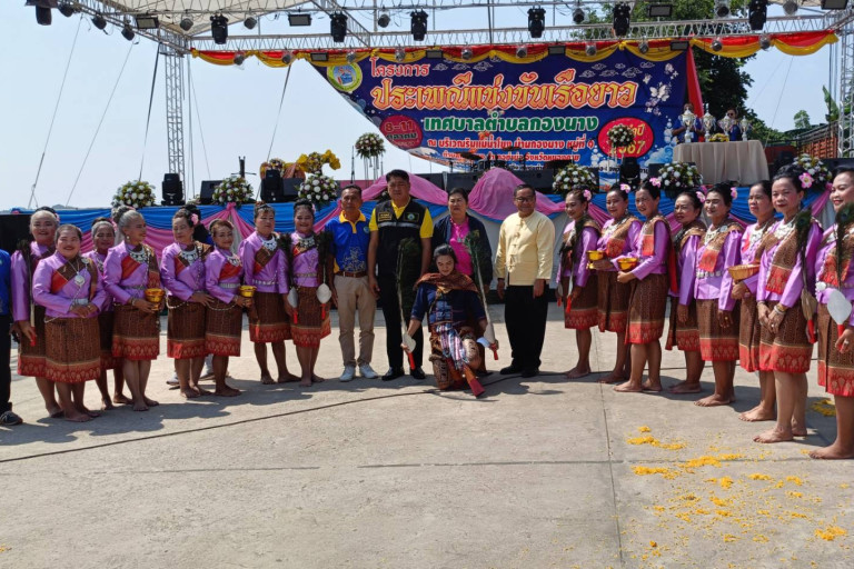 วันที่ 11 ต.ค. 2567 ที่ บริเวณริมฝั่งแม่น้ำโขงบ้านกองนาง หมู่ที่ 1 ต.กองนาง อ.ท่าบ่อ จ.หนองคาย นายนวน โทบุตร นายอำเภอท่าบ่อ เป็นประธานเปิดการแข่งขันประเพณีเรือยาวไทย-ลาว ประเภท 50 - 55 ฝีพาย ระยะทาง 450 เมตร ประจำปี 2567 ซึ่งเทศบาลตำบลกองนาง จัดให้มีขึ้นหลังเกิดอุทกภัยในพื้นที่นานกว่าหนึ่งเดือน จากเดิมจะจัดระหว่างวันที่ 18 -21 ก.ย. 67 ต้องเลื่อนมาจัดระหว่างวันที่ 8 - 11 ต.ค. 67 โดยมี นายชิงชัย ทิพย์สมบัติ นายกเทศมนตรีตำบลกองนาง กล่าวรายงาน โยมีส่วนราชการ กำนัน ผู้ใหญ่บ้าน สมาชิกเทศบาลฯ คณะกรรมการชุมชน อสม. สถานศึกษา และประชาชนในพื้นที่ ร่วมจำนวนมาก