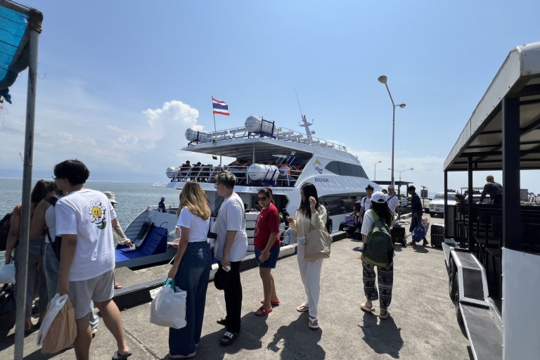 ซึ่งมีเรือโดยสาร 2 บริษัทให้บริการอยู่ คือ บริษัท บุญศิริเรือเร็ว จำกัด และบริษัท เสือดำโก จำกัด ซึ่งมีเรือรอรับบริการ 6 ลำ และมี 2 ลำที่จะเเวะส่งนักท่องเที่ยวที่เกาะหมาก ซึ่งเรอ่มเดินทางตั้งแต่เวลา 10.30 น.จนถึงเวลา 12.00 น.ทำให้บริเวณท่าเทียบเรือมีนักท่องเที่ยวจำนวนมากลงเรือโดยสารทั้งสองบริษัท และยังรถโดยสาร รถส่วนตัวเดินทางมาส่งจำนวนมาก ซึ่งมีนายอภิสิทธิ ผกาหอม เจ้าหน้าที่ของสำนักงานเจ้าท่าตราดดูแล,ควบคุม และอำนวยความสะดวกให้กับนักท่องเที่ยวด้วย
