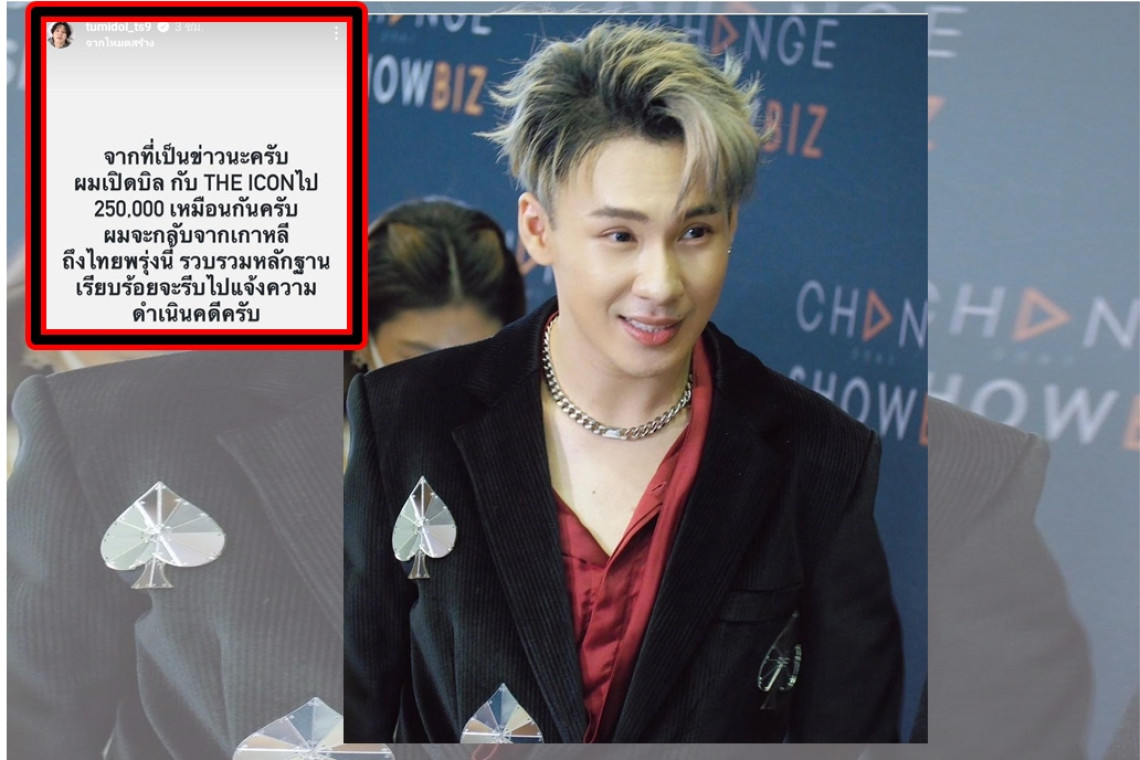 เมื่อวันที่ 14 ตุลาคม 2567 “ตั้ม เดอะสตาร์” ได้ออกมาเคลื่อนไหวผ่านอินสตาแกรมสตอรี่ถึงประเด็นดังกล่าว พร้อมเขียนแคปชั่นว่า "จากที่เป็นข่าวนะครับ ผมเปิดบิลกับ THE ICON ไป 250,000 บาท เหมือนกันครับ ผมจะกลับจากเกาหลีถึงไทยพรุ่งนี้ รวบรวมหลักฐานเรียบร้อยจะรีบไปแจ้งความดำเนินคดีครับ"