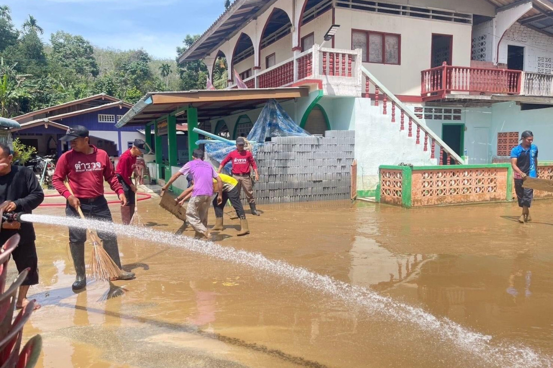 วันนี้ 14 ตุลาคม 2567 พ.ต.อ.จิรวัฒน์ ดูดิง ผกก. สภ.เบตง มอบหมายให้ พ.ต.ท.ทศพล พลอยงาม รองผู้กำกับการป้องกันปราบปราม สภ.เบตง นำกำลังพล สภ.เบตง ลงพื้นที่ บ้านมาลาเหนือ ม.9 ต.ตาเนาะแมเราะ อ.เบตง จ.ยะลา ลุยทำความสะอาดพื้นที่ที่ได้รับผลกระทบฯ จากอุทกภัย ซึ่งมีบ้านเรือนที่ได้รับผลกระทบกว่า 50 หลังคาเรือน ซึ่งได้จัดชุดปฏิบัติการให้การช่วยเหลือ เก็บกวาดทำความสะอาดบ้านเรือนประชาชนและถนนที่มีดินโคลนตกค้างหลังน้ำลด ตลอดจนการรักษาความปลอดภัยในชีวิตและทรัพย์สินให้กับประชาชน และขอเป็นกำลังใจให้ประชาชนที่ได้รับผลกระทบผ่านพ้นอุทกภัยครั้งนี้ในเร็ววัน