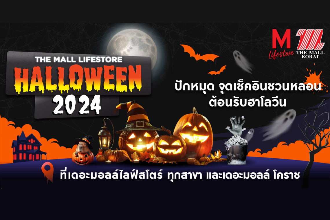 เดอะมอลล์ไลฟ์สโตร์ บางแค THE MALL LIFESTORE HALLOWEEN SPOOKY PUMPKINS TOWN วันที่ 26 – 31 ตุลาคม ร่วมเดินทางสู่หมู่บ้านฟักทอง เรื่องราวที่มาของ JACK O’ LANTERN ที่เมือง PUMPKINS TOWN 2024 ร่วมสัมผัสประสบการณ์หลอนผ่านกิจกรรมสุดหวีด พร้อมร่วมแชะ&แชร์ ถ่ายภาพบรรยากาศเมือง PUMPKINS TOWN และ PUMPKIN ยักษ์สูง 3 เมตร ลุ้นระทึกกับการประกวดแฟนซีผี และการแข่งขัน HALLOWEEN SPOOKY DANCE & COVER DANCE ชิงรางวัลรวมกว่า 200,000 บาท