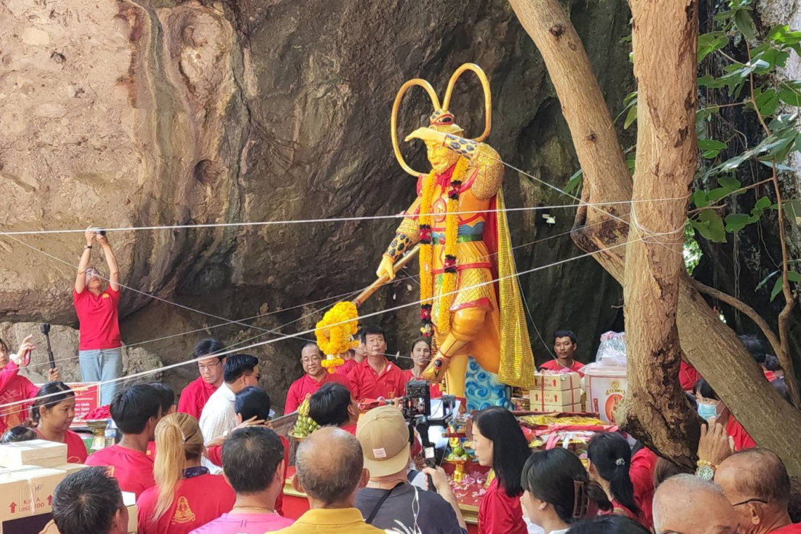 ผู้สื่อข่าวรายงานว่าเมื่อเวลา 10.00 น. ของวันที่ 15 ตุลาคม 2567 ที่อุทยานพระใหญ่ถ้ำเขาชะอางค์ ตำบลหนองไผ่ อำเภอด่านมะขามเตี้ย จังหวัดกาญจนบุรี ได้มีพิธีพุทธาเทวาภิเษก เหรียญรุ่นแรกคือรุ่นเหนือดวง อากงเห้งเจีย โดยมี นายทิพย์ชยพล ปรีชาบริสุทธิ์กุล ประธานผู้ก่อตั้งศาลเจ้า ฉีเทียนฮุกป๋อตั๊วไต่เสี่ยฮุกโจ้ว หรือศาลเจ้าพ่อเห้งเจีย จังหวัดนครปฐม และคณะร่วมกันประกอบพิธีคายกวาง เปิดประตูสวรรค์อัญเชิญเทพเทวดามาร่วมในพิธี ซึ่งมีเหล่าผู้ที่เคารพนับถืออากงเห้งเจีย ต่างพากันสวมเสื้อแดงเข้าร่วมพิธีกันเป็นจำนวนมาก