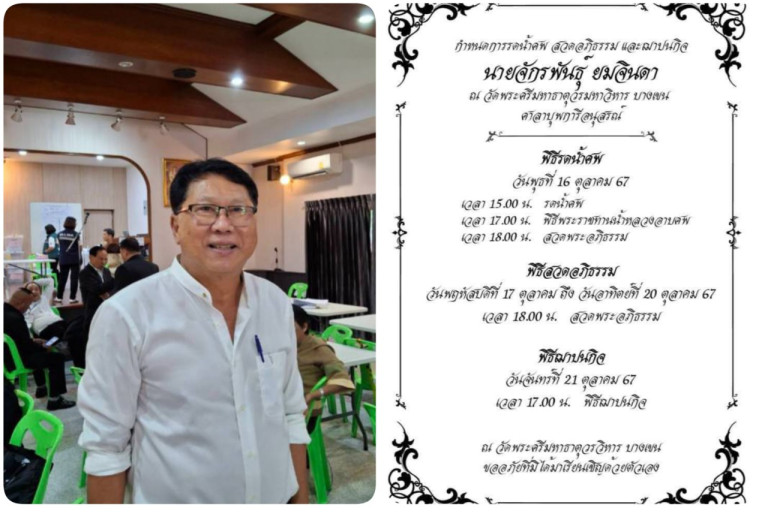 ล่าสุดทางครอบได้เปิดกำหนดการรดน้ำศพ สวดอภิธรรม และฌาปนกิจ ที่วัดพระครีมหาธาตุวรมหาวิหาร บางเขน ศาลาบุพการีอนุสรณ์