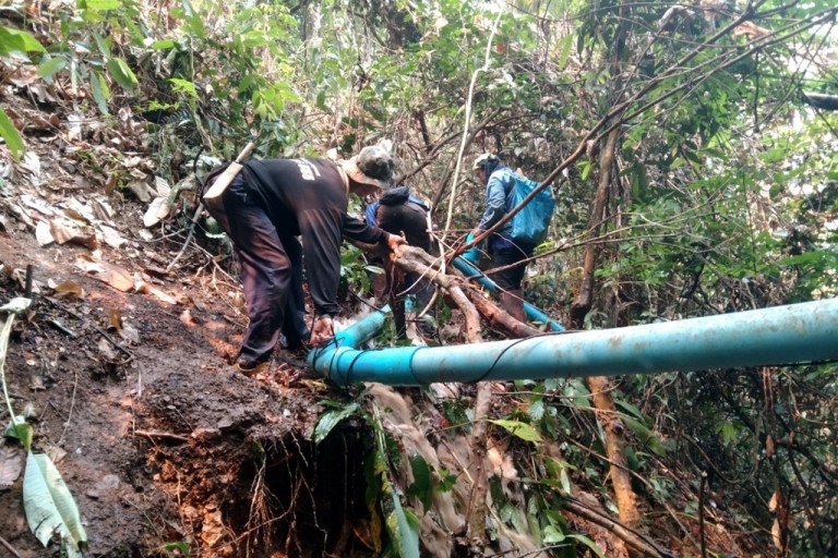 ทั้งนี้ ในปี 2567 ได้มีการประสานกับกลุ่มผู้ใช้น้ำ เพื่อเข้าไปซ่อมแซมระบบส่งน้ำที่เสียหาย ตั้งแต่ กม.0+000 ถึง กม.11+000 โดยเริ่มตั้งแต่วันที่ 10 เมษายน 2567 ทำให้ขณะนี้สามารถส่งน้ำไปยังบ่อพักน้ำแห่งที่ 1 ได้แล้ว ส่วนบ่อพักน้ำแห่งที่ 2 ได้ซ่อมแซมท่อส่งน้ำมาจนถึงตัวบ่อแล้ว แต่เนื่องจากท่อส่งน้ำมีความต่างระดับจากต้นทางน้ำไปจนถึงปลายท่อ ประมาณ 112 เมตร และมีแรงดันสูงในเส้นท่อ จึงทำให้ท่อแตกชำรุด ส่งผลให้ไม่สามารถส่งน้ำไปยังบ่อที่ 2 และ 3 ได้ในขณะนี้ ประกอบกับฤดูฝนที่ผ่านมามีปริมาณฝนตกในพื้นที่ เกิดเหตุดินสไลด์และท่อส่งน้ำหลุดในจุดอื่นนอกเหนือจากจุดที่ซ่อมไปแล้วเพิ่มเติม