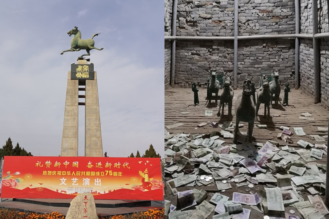 ปรารถนามากที่สุด มีรูปลักษณ์สง่างามในท่า กำลังเหิรลม เท้าข้างหนึ่งเหยียบอยู่บนหลังนกนางแอ่นที่กำลังบินลือกันว่าเหงื่อของม้าสวรรค์นี้มีสีแดงดุจชาด ในขณะที่ส่งเสียงร้องนั้นสามารถสยบม้าของศัตรูให้หมอบราบคาบได้โดยง่ายดาย ปัจจุบันสัญลักษณ์ "ม้าเหิน" ได้ถูกใช้เป็นโลโก้ ของการท่องเที่ยวแห่งสาธารณรัฐประชาชนจีน