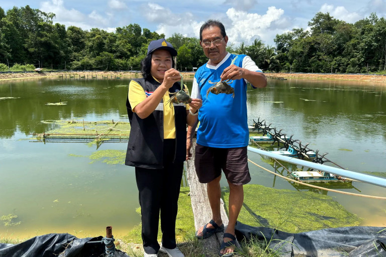 นางพรรณี เดชภักดี ประมงจังหวัดตรัง พร้อมด้วยนางกาญจนา เตี้ยวซี หัวหน้ากลุ่มพัฒนาและส่งเสริมอาชีพการประมง นางสาวนลินี  สิงหบุญ นักวิชาการประมงปฏิบัติการ และนายศุภมงคล สกุลราช ประมงอำเภอสิเกา ลงพื้นที่เยี่ยมเยือนเกษตรกรผู้เพาะเลี้ยงสัตว์น้ำ (ปูหน้าขาว) ของนายอุดร  ไสลเพชร ณ หมู่ที่ 1 ตำบลบ่อหิน อำเภอสิเกา จังหวัดตรัง ซึ่งได้ปรับเปลี่ยนมาจากการเลี้ยงกุ้งทะเล โดยได้แลกเปลี่ยนองค์ความรู้ และให้คำแนะนำแก่เกษตรกรสำหรับการเลี้ยงสัตว์น้ำต่อไป