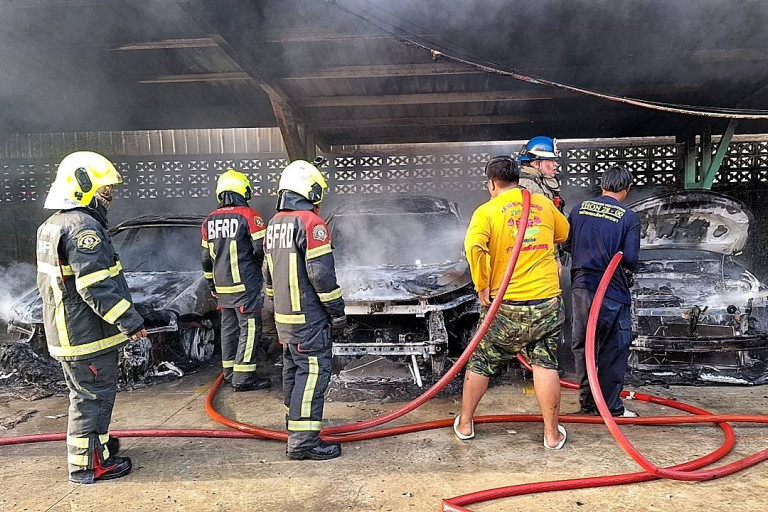 ที่เกิดเหตุเป็นที่จอดรถของเอกชนภายในซอยเทอดไท 55 พบแสงเพลิงกำลังลุกไหม้รถยนต์ 3 คัน โดยต้นเพลิงเกิดขึ้นที่รถยนต์มิตซูบิชิ รุ่นเอ็กซ์เพนเดอร์ สีขาวทะเบียน 8 ขด 7567 กรุงเทพมหานคร ที่จอดอยู่คันกลาง ก่อนเพลิงลุกลามไปยังรถเก๋งโตโยต้า รุ่นวีออส สีขาว ทะเบียน 4 กฉ 4086 กรุงเทพมหานคร และรถยนต์เชฟโรเลต รุ่นออฟตร้า ทะเบียน 5 ขช 6401 กรุงเทพมหานคร ที่จอดอยู่ด้านข้างได้รับความเสียหายรวม 3 คัน เจ้าหน้าที่ใช้น้ำทำการดับ 10 นาทีเพลิงจึงสงบ โดยเพลิงได้เผารถทั้ง 3 คัน จนมีสภาพเหลือเป็นเพียงเศษเหล็ก