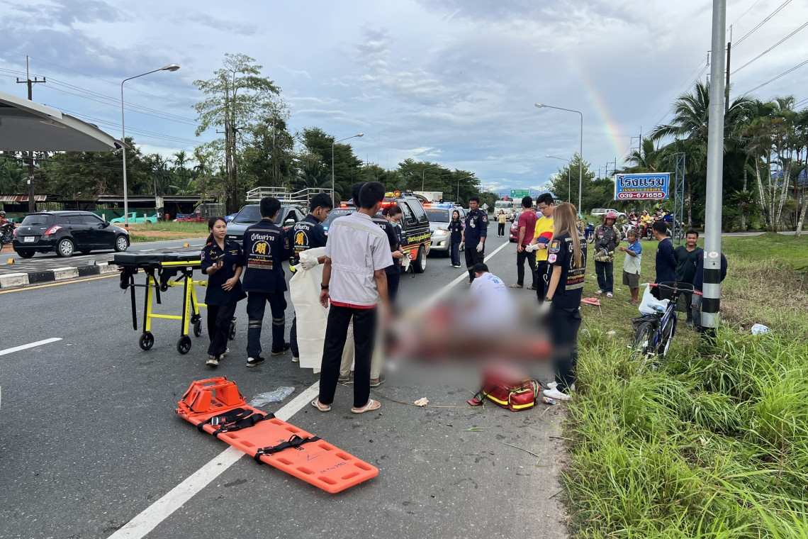 ในที่เกิดเหตุผู้บาดเจ็บชื่อนางสาวพรธิตา อายุ 20 ปี อยู่บ้านเลขที่ 5 ม.3 ต.เกาะกูด อ.เกาะกูด จ.ตราด จมน้ำอยู่ในร่องน้ำริมถนน เจ้าหน้าที่กู้ภัยนำตัวขึ้นมาจากน้ำ พบว่าร่างกายไม่ตอบสนอง หัวใจหยุดเต้น ศีรษะมีแผลฉกรรจ์ อาสากู้ภัยต้องปฐมพยาบาลเบื้องต้น พร้อมปั๊มหัวใจ รอรถกู้ชีพโรงพยาบาลตราดเดินทางรับคนเจ็บ เมื่อรถกู้ชีพเดินทางมาถึง ตรวจสอบชีพจรอีกครั้งพบว่านางสาวพรธิตา เสียชีวิตแล้ว ส่วนผู้บาดเจ็บอีก 2 คน เป็นชาย อายุประมาณ 25 ปี (แฟนผู้เสียชีวิต) และอายุประมาณ 60 ปี (ขี่รถจักรยาน)
