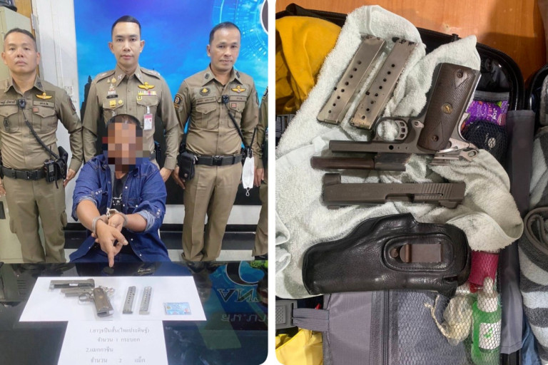 รวบหนุ่มใหญ่พกปืนลูกซองเถื่อนเข้าสถานีขนส่งหมอชิตถูกจับทันควัน