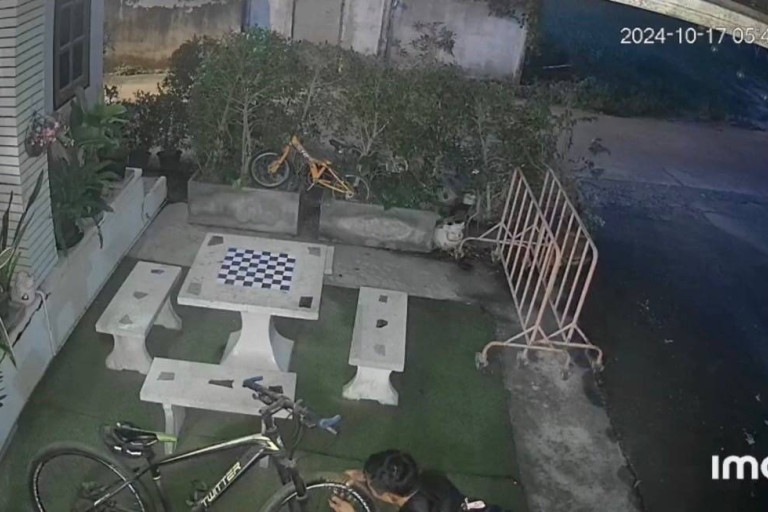 ผู้สื่อข่าวรายงาน ว่า จากภาพกล้องวงจรปิดของอพาร์ทเม้นท์แห่งหนึ่ง ภายในซอย เทศบาล 1 ม.1 ต.ห้วยใหญ่ อ.บางละมุง จ.ชลบุรี จับภาพหัวขโมย ลักษณะเป็นชายไทย สวมเสื้อสีดำกางเกงขาสั้น สะพายกระเป๋าเป้สีดำ ในมือถือถุงข้าวเหนียวหมู ก่อนเดินตรงเข้ามาดูลาดเลาบริเวณใต้บันไดของอพาร์ตเมนต์ แล้วลากรถจักรยาน ออกมาด้านนอกใช้เครื่องสูบลมที่วางไว้ข้างรถจักรยาน มาเติมลมยางอย่างใจเย็น ก่อนจะปั่นจักรยาน หลบหนีไป