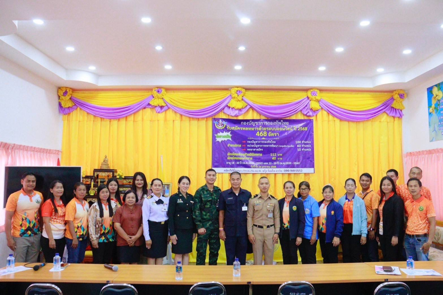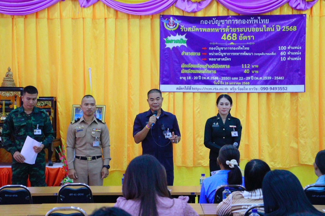 ผู้สื่อข่าวรายงาน ว่า ที่ห้องประชุมองค์การบริหารส่วนตำบลปะอาว อ.อุทุมพรพิสัย จ.ศรีสะเกษ พ.อ.ธีระพล สาธรวิศิษฐ์ ผู้บังคับหน่วยพัฒนาการเคลื่อนที่ 53 สำนักงานพัฒนาภาค 5 หน่วยบัญชาการทหารพัฒนา (นพค.53 สนภ.5 นทพ.) มอบหมายให้ ร.ท.ภาวัช ดวนใหญ่ ปฏิบัติหน้าที่ นายทหารกำลังพล หัวหน้าชุดประชาสัมพันธ์ หน่วยพัฒนาการเคลื่อนที่ 53 นำกำลังพลลงพื้นที่ประชาสัมพันธ์การรับสมัครทหารกองเกินเข้ารับราชการเป็นทหารกองประจำการ ด้วยวิธีร้องขอ (กรณีพิเศษ) ผ่านระบบออนไลน์ ประจำปี พ.ศ. 2568 ในสังกัด กองบัญชาการกองทัพไทย ให้กับประชาชนในพื้นที่ ต.ปะอาว และ ต.หัวช้าง อ.อุทุมพรพิสัย จ.ศรีสะเกษ