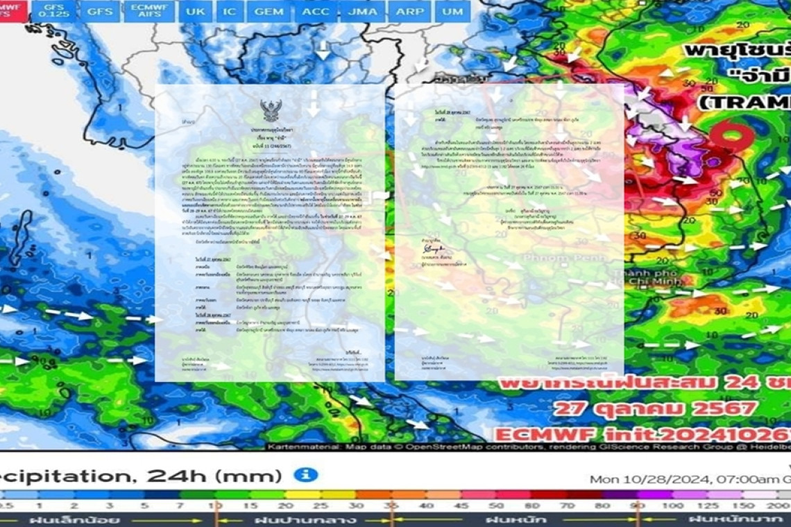 วันที่ 27 ต.ค.67 กรมอุตุนิยมวิทยา ได้ออกประกาศฉบับที่ 11 เรื่อง พายุ “จ่ามี” ความว่า...