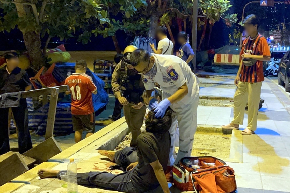 เมื่อเวลา 01.46 น. วันที่ 29 ต.ค.67 ร.ต.อ.พุทธรักษ์ สอนคำหาน รอง สว.สอบสวน สภ.เมืองพัทยา รับแจ้งเหตุใช้อาวุธมีดทำร้ายร่างกาย มีผู้ได้รับบาดเจ็บ เหตุเกิดบริเวณริมถนนเลียบชายหาดจอมเทียน ช่วงจอมเทียนซอย 12 ต.หนองปรือ อ.บางละมุง จ.ชลบุรี หลังรับแจ้งจึงรีบประสานกำลังเจ้าหน้าที่อาสาสมัครกู้ภัยสว่างบริบูรณ์ธรรมสถานเมืองพัทยา ไปตรวจสอบ