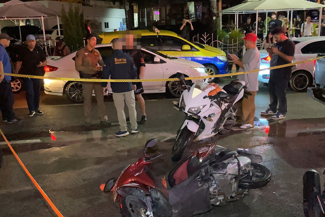 เมื่อเวลา 04.06 น.วันที่ 30 ตุลาคม 2567 ร.ต.อ.วุฒิกรณ์ ปลอดโปร่ง รอง สวป.สภ.เมืองพัทยา รับแจ้งเหตุมีคนใช้อาวุธปืนยิงกัน เหตุเกิดบริเวณหน้าร้านหมูกระทะแบกับดินสาม ถนนเส้นเพชรตระกูล เมืองพัทยา ต.หนองปรือ อ.บางละมุง จ.ชลบุรี หลังรับแจ้งจึงรายงานผู้บังคับ พ.ต.อ.นาวิน ธีระวิทย์ ผกก.สภ.เมืองพัทยา พร้อมนำกำลังเจ้าหน้าที่ตำรวจสายตรวจเขต เจ้าหน้าที่ชุดสืบสวน สภ.เมืองพัทยา รีบไปตรวจสอบ