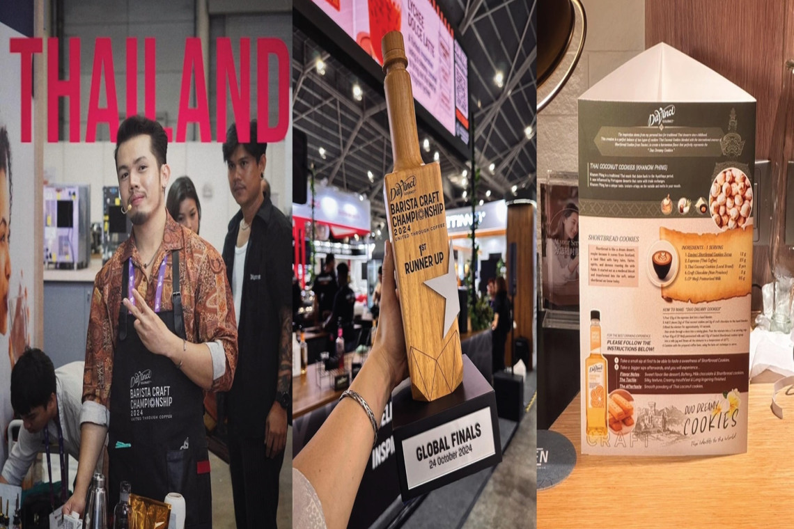 นายจตุพล จันหนองหว้า เจ้าหน้าที่อาวุโส พัฒนาทักษะมาตรฐานกาแฟ และเครื่องดื่ม หน่วยงานคัดสรรและเบลลินี่พรีเมี่ยมคาเฟ่ ได้รับรางวัลรองชนะเลิศอันดับ 1 จากการแข่งขันระดับโลก Davinci Gourmet Barista Craft Championship 2024 ที่ประเทศสิงคโปร์ เวทีที่เกิดขึ้นเพื่อร่วมเฉลิมฉลองงานศิลปะอันประณีต งานฝีมือ และวัฒนธรรมกาแฟอันมีชีวิตชีวาที่เชื่อมโยงเราทุกคนเข้าด้วยกัน และเพื่อเฟ้นหาบาริสต้าที่มีใจรัก ในการสร้างสรรค์เมนูกาแฟชั้นเลิศ