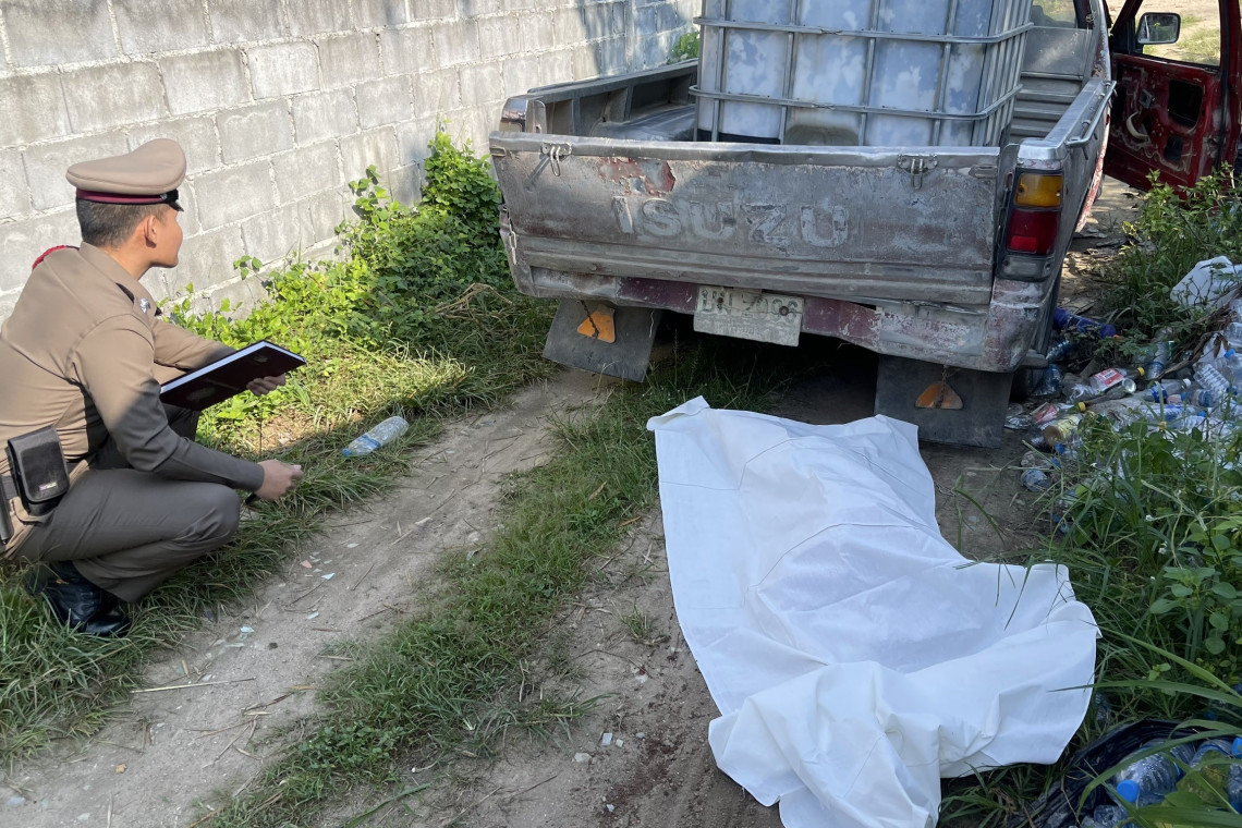 ที่เกิดเหตุ พบรถกระบะตอนเดียวสีแดง ทะเบียน บม 2996 ระยอง โดยท้ายกระบะบรรทุกถังน้ำขนาด 1,000 ลิตร ในจุดเดียวกันพบร่างผู้เสียชีวิต ทราบชื่อต่อมาคือ นางแต้ง เชื้อกลาง อายุ 84 ปี สภาพศพนอนคว่ำหน้า สวมเสื้อคอกระเช้าสีฟ้าคลุมทับด้วยเสื้อเชิ้ตสีขาวลายดอก และนุ่งผ้าถุงสีชมพู มีบาดแผลบริเวณศีรษะที่ถูกรถเหยียบจนกะโหลกและใบหน้ายุบ หลานชายวัย 25 ปี ของผู้เสียชีวิตนั่งร่ำไห้อยู่ข้างร่างยายผู้เป็นที่รัก สร้างความสะเทือนใจให้กับผู้เห็นเหตุการณ์