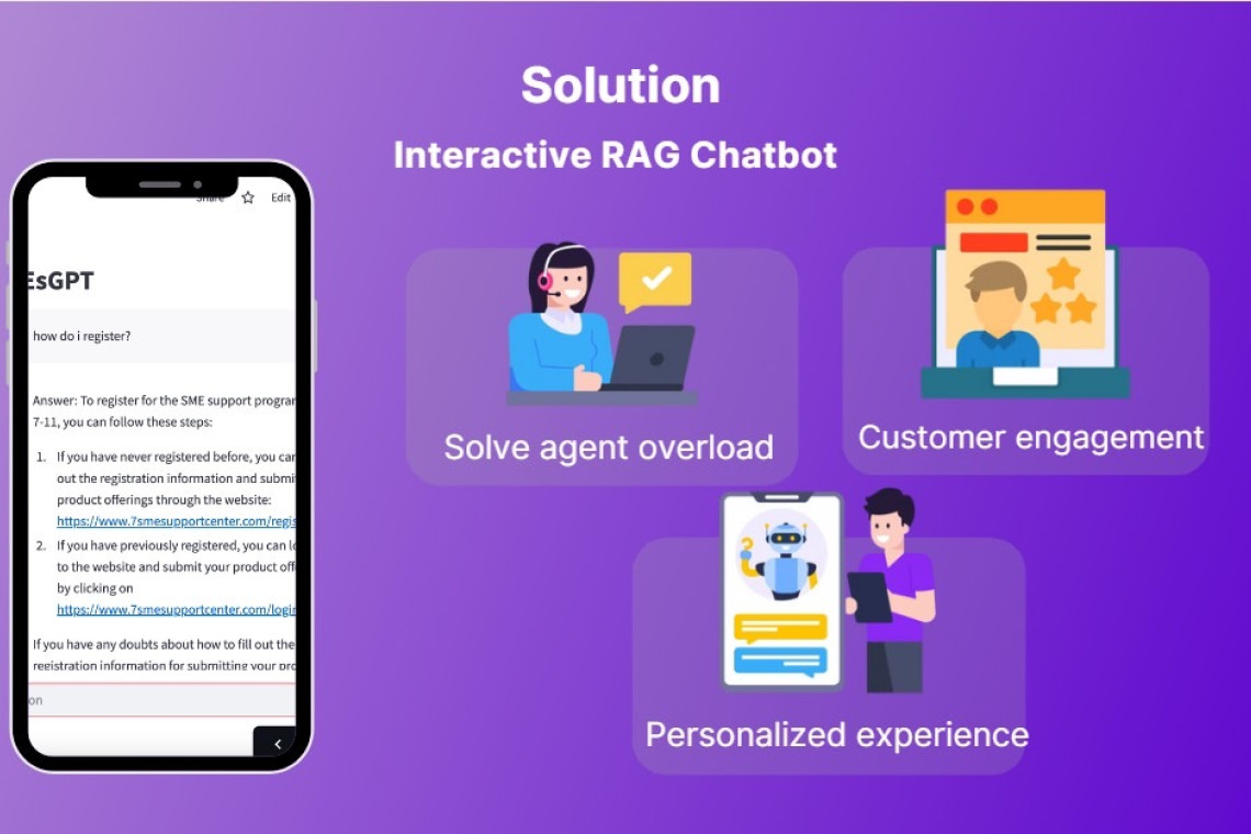 โดยผลงานที่โดนใจคณะกรรมการทั้งไทย จีน ไต้หวัน สิงคโปร์ และคว้าชัยชนะในครั้งนี้ ได้แก่ รางวัลชนะเลิศ ได้แก่ ทีม KM & Chatbot for SMEs สร้างสรรค์ AI Chatbot บน ChatGPT API เพื่อเป็นการจัดการความรู้ (Knowledge Mangement หรือ KM) ช่วยตอบคำถามให้กับเหล่า SMEs ที่เข้ามาติดต่อสอบถามข้อมูลกับทางเซเว่น อีเลฟเว่น ลดภาระของเหล่า Call Center ส่วนรางวัลรองชนะเลิศอันดับ 1 กับทีม PM Guard สร้างสรรค์ AI เข้ามาช่วยแก้ปัญหาของทีมบำรุงรักษาเชิงป้องกันและบำรุงรักษาเชิงแก้ไข (Preventive Maintenance & Corrective Maintenance หรือ PMCM) ในการจำแนกประเภทของตู้ขายไอศกรีม การนำ AI เข้ามาช่วยตรวจสอบ จะช่วยลดทั้งภาระงานของทีม PMCM และลดความผิดพลาดของการเบิกค่าใช้จ่ายการซ่อมบำรุงได้อย่างมีนัยสำคัญ และ รางวัลรองชนะเลิศอันดับ 2 กับทีม AI for Budget Forecasting นำ AI มาช่วยพยากรณ์ความต้องการ (Demand) เพื่อปรับปรุงความแม่นยำการพยากรณ์ยอดขาย การควบคุมด้านการเงิน การปรับกลยุทธ์ และเพิ่มผลกำไร