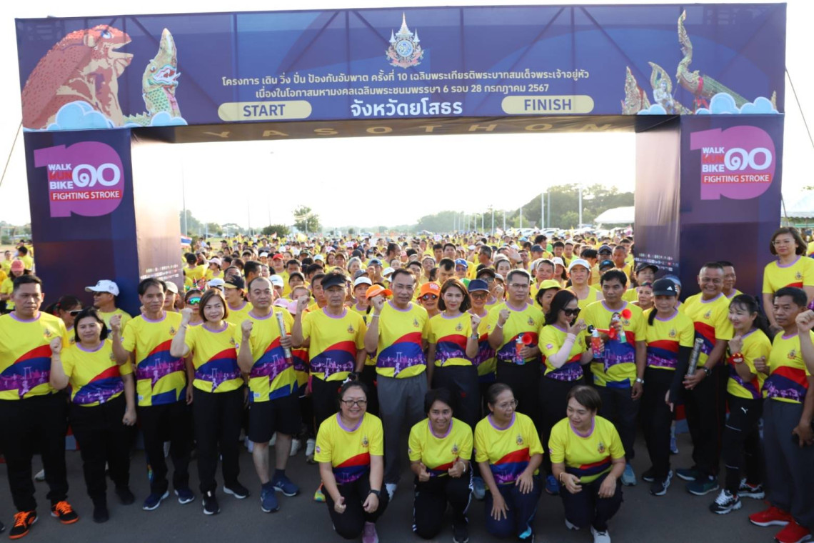 นายชรินทร์ ทองสุข ผู้ว่าราชการจังหวัดยโสธรกล่าวว่า จังหวัดยโสธรกำหนดจัดกิจกรรมครั้งนี้ เพื่อเฉลิมพระเกียรติพระบาทสมเด็จพระเจ้าอยู่หัว เนื่องในโอกาสพระราชพิธีมหามงคล เฉลิมพระชนมพรรษา 6 รอบ 28 กรกฎาคม 2567 และทรงเป็นแบบอย่างแก่ประชาชนขาวไทย ในการรักษาสุขภาพ และการออกกำลังกาย โดยกิจกรรมในงานเน้นสร้างความตระหนักรู้ ความเข้าใจที่ถูกต้องในการป้องกัน ดูแล และรักษาโรคหลอดเลือดสมอง โดยบูรณาการความร่วมมือหน่วยงานภาครัฐ ภาคเอกชน รัฐวิสาหกิจ และองค์กรปกครองส่วนท้องถิ่นร่วมจัดกิจกรรม ตามโครงการ เดิน วิ่ง ปั่น ป้องกันอัมพาต ครั้งที่ 10 เฉลิมพระเกียรติ ในหัวข้อ “คนไทยสมองดี” (Healthy Thais : Healthy Brains)” ที่ทุกภูมิภาคทั่วประเทศ ได้ดำเนินการพร้อมกัน