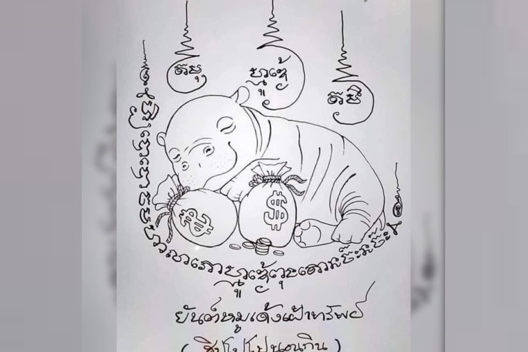 เรียกว่าซอฟต์พาวเวอร์ของแทร่รันทุกวงการสำหรับ "หมูเด้ง" ฮิปโปแคระเซเลบชื่อดัง ล่าสุดเมื่อวันที่ 3 พ.ย.67 เพจดัง "อีซ้อขยี้ข่าว : อีซ้อ" ได้ภาพยันต์หมูเด้ง พร้อมระบุข้อความว่า "ผุดอีก ยันต์หมูเด้งเฝ้าทรัพย์ รุ่นฮิปโปนอนกิน เด่นเรื่องค้าขายรุ่งเรือง ช่วยด้านเมตตามหานิยม ใครเห็นหลงรักหัวปักหัวปำ"