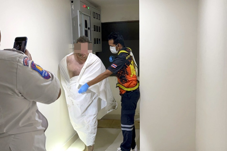 ที่เกิดเหตุพบ นักท่องเที่ยวและประชาชนอยู่ในอาการแตกตื่นตกใจ ที่ฝ้าเพดานของร้านเกมส์ พบร่างกายส่วนขาของ MR.PAUL HADFIELD อายุ 51 ปี สัญญาณอังกฤษ ทะลุลงมาส่งเสียงร้องขอความช่วยเหลือ โดยเจ้าหน้าที่กู้ภัยฯ ช่วยกันนำร่างขึ้นจากหลังคา แล้วปฐมพยาบาลเบื้องต้น ก่อนเคลื่อนย้ายส่งโรงพยาบาลอย่างเร่ง ตรวจสอบพบว่า ผู้บาดเจ็บตกมาจากระเบียงชั้นสองของโรงแรม ซึ่งอยู่ติดกัน แล้วร่างกระแทกกับหลังคาจนทะลุฝ้าของร้านเกม นอกจากนี้ ภายในห้องที่ 210 ชั้นที่ 2 อุจจาระเรี่ยราดที่นอนและตามพื้นเป็นจำนวนมาก ส่งกลิ่นเหม็นคละคลุ้งตลบอบอวลไปทั่ว