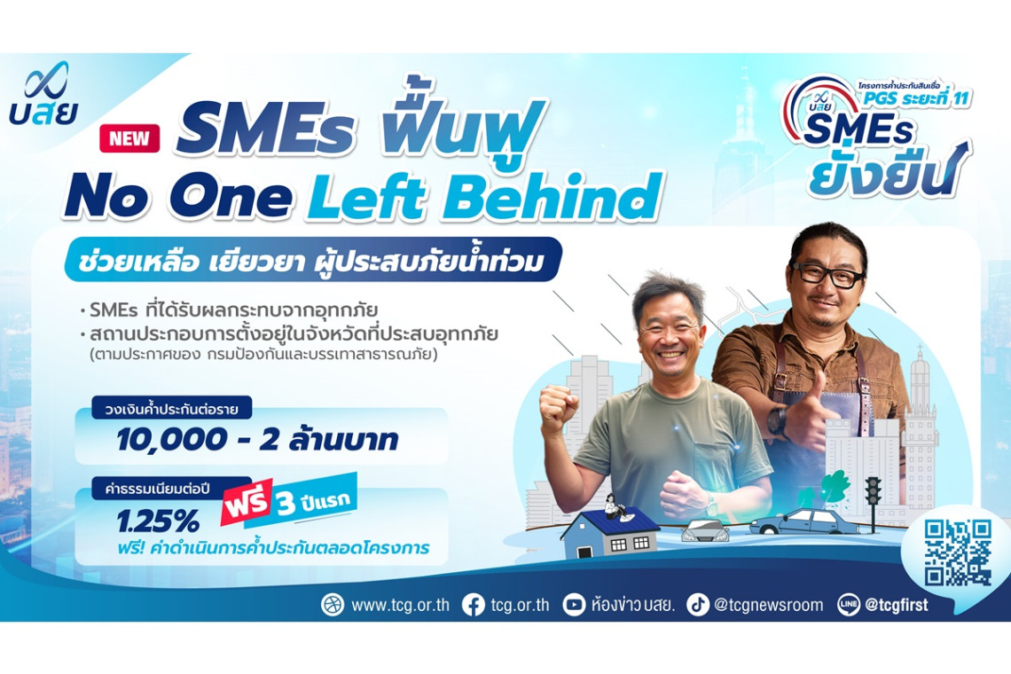 บสย.เร่งเครื่องช่วย SMEs ฟื้นฟูกิจการหลังน้ำท่วม หนุนรายย่อย อาชีพอิสระ เข้าถึงแหล่งเงินทุน ลดกู้เงินนอกระบบ