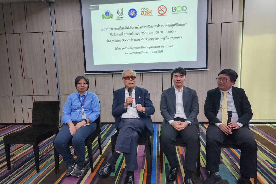 ภัยเงียบ! คนไทย 70% สูดควันบุหรี่มือสอง คร่าชีวิตคนไทยปีละกว่า 20,000 ราย สูญเสียปีสุขภาวะมากกว่า 5 แสนปี หญิงไทยรับควันบุหรี่มือสองสูงอันดับ 5 ของโลก เปิดงานวิจัยใหม่ยืนยันสูดควันบุหรี่มือสองเสี่ยงมะเร็งเต้านม 1.24 เท่า ยิ่งสูดควันเยอะ ยิ่งเสี่ยงเพิ่มขึ้น แพทย์ย้ำควันบุหรี่ทุกชนิดมีอันตราย บุหรี่ไฟฟ้าแม้ไม่มีกลิ่นเหม็นแต่แฝงสารพิษเพียบ ทำลายสุขภาพทุกระบบ